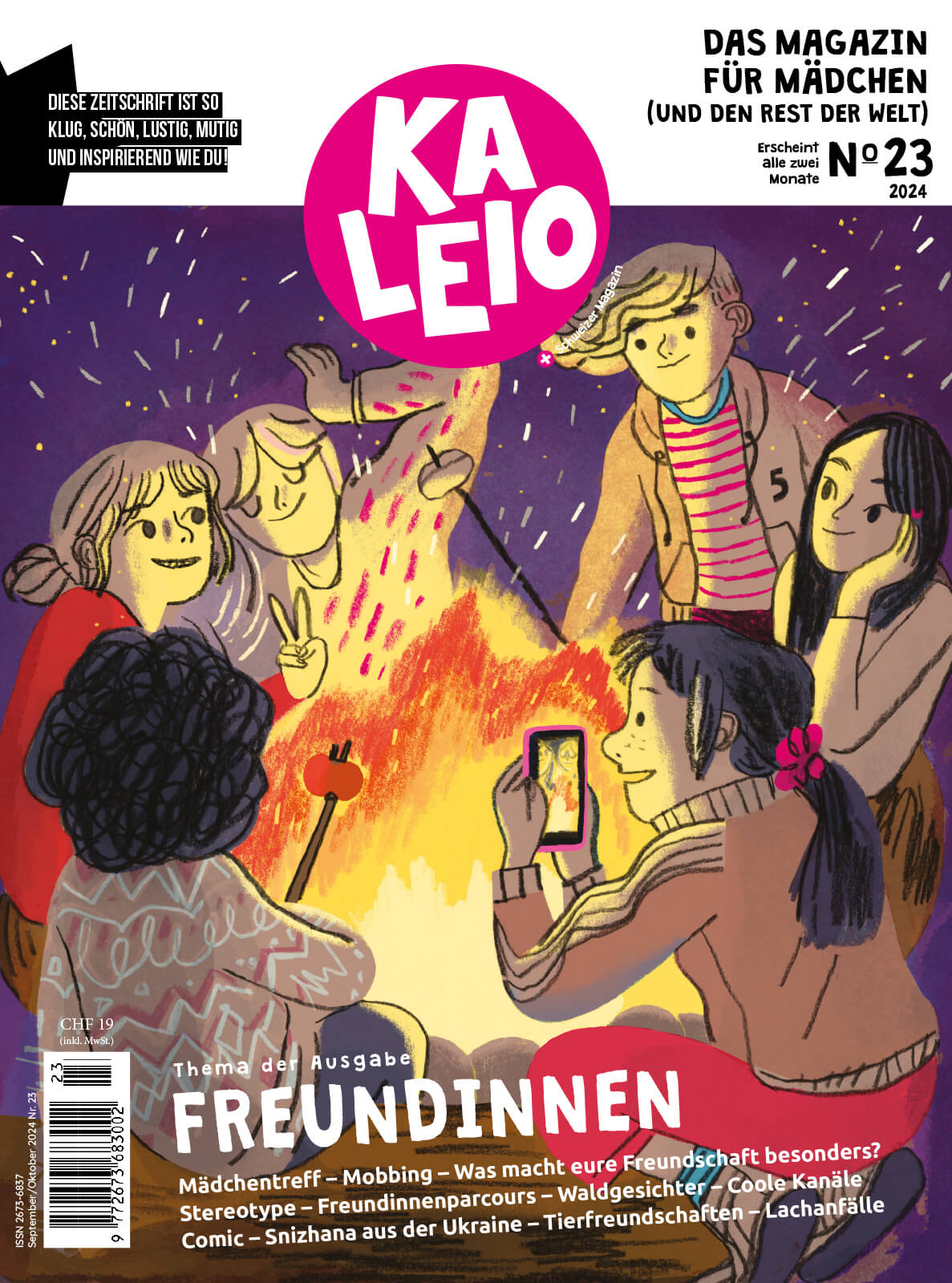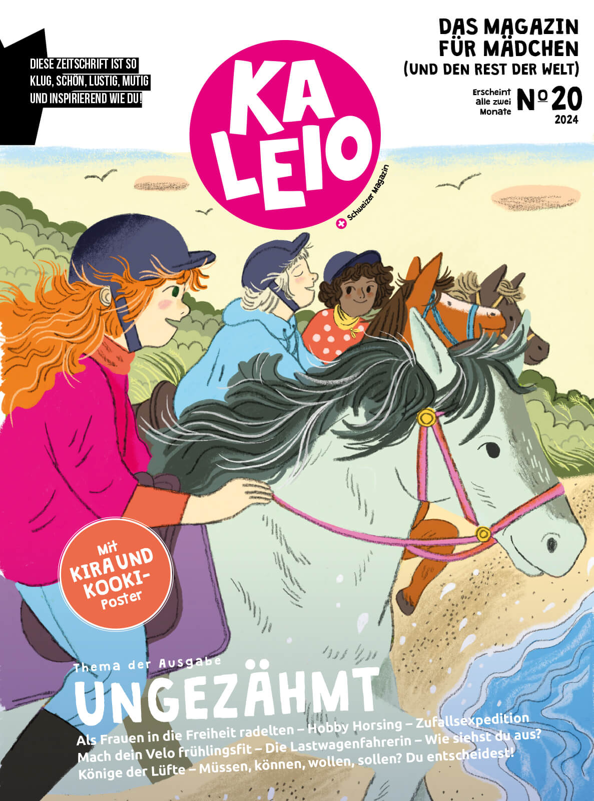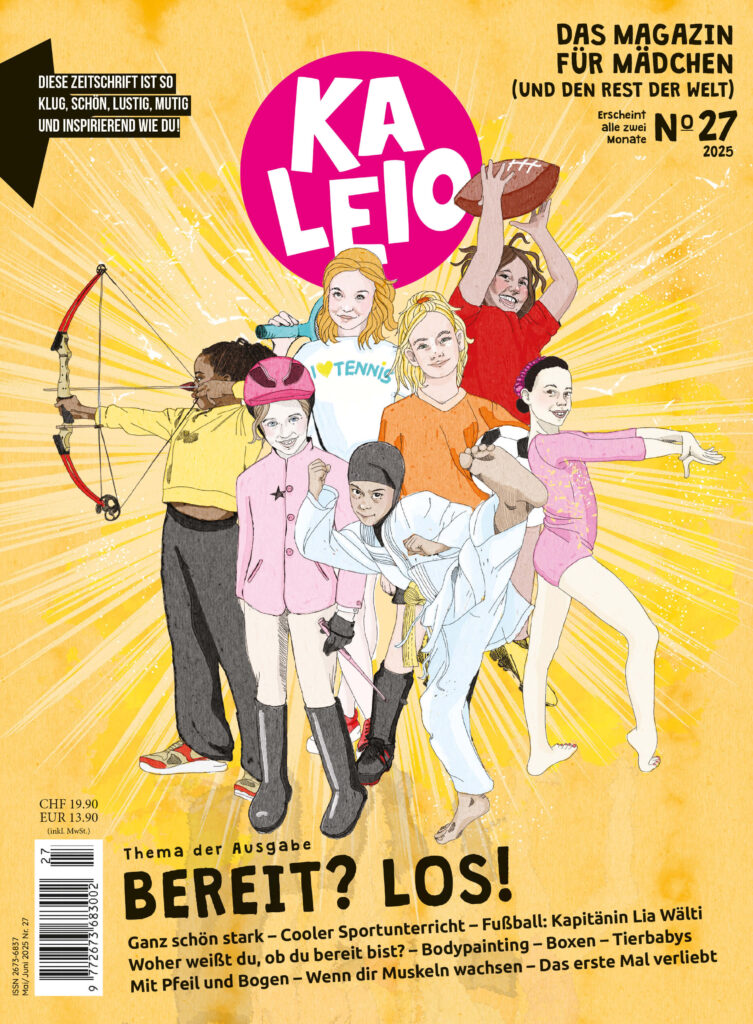 Du findest, Mädchen sollen aktiv durchs Leben gehen, mutig Dinge ausprobieren und ihre Bedürfnisse selbstbewusst ausdrücken? Wir auch. KALEIO taucht in Themen ein, die Mädchen zwischen 8 und 13 Jahren beschäftigen. Ohne Genderklischees. Ohne Rollenerwartung. KALEIO – das gedruckte Magazin für Mädchen.