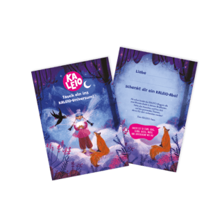 Mit dem KALEIO-Geschenkset erhält die Beschenkte pünktlich vor Weihnachten die aktuelle Ausgabe 30 («Ich hab’s») und das Postkarten-Set mit einzigartigen 16 KALEIO-Illustrationen. Mit dem KALEIO-Schnupperabo landet ausserdem auch die Januar-Ausgabe von KALEIO im Briefkasten der Beschenkten – für einen aufregenden Start ins neue Jahr!