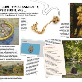 Die KALEIO-Ausgabe Nr. 31 «Ran ans Werk!» weiht dich in die Abläufe und magischen Momente kreativer Prozesse ein und gibt Tipps, wie du mit Rückschlägen umgehen kannst. Das Magazin lädt dich ein, darüber nachzudenken, woher deine Kreativität kommt, und zeigt, dass selbst etwas so Alltägliches wie eine Kartoffel Menschen zu Meisterwerken inspiriert hat. Du erfährst, wie du damit umgehen kannst, wenn jemand deine Werke oder Ideen schlechtredet. Ausserdem lernst du, dass Kreativität überall eine wichtige Rolle spielt – nicht nur, wenn wir künstlerisch tätig sind. Auch bei der Suche nach Lösungen für Probleme helfen uns kreative Einfälle und Gedanken.